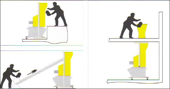 Die Beschickung der Dosenpresse Magnus 30/L (große Dosenpresse) kann sowohl über eine Laderampe, über einen Füllschacht, als auch über ein Förderband entsprechend den nachfolgenden Darstellungen erfolgen: